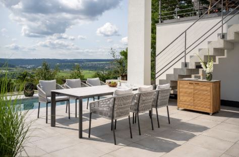Wie oft begegnet uns der Begriff „Wohnzimmer im Freien“, aber was steckt wirklich dahinter? Diese Frage hat STERN inspiriert, kreative Ideen zu entwickeln, wie wir stilvolle Outdoor-Wohnräume gestalten können, die zum Verweilen und Entspannen einladen. Das Ziel war es, eine Vielfalt an Materialien und Möbelserien zu schaffen, die Design, Komfort und Funktionalität perfekt miteinander vereinen. Entstanden sind Möbelkombinationen, die eine einladende Atmosphäre bieten, in der man die Seele baumeln lassen kann. Vom Essbereich über gemütliche Lounge- und Sofaecken bis hin zu praktischen Liegen und Ablagen – all diese Elemente fügen sich harmonisch zusammen und verleihen jedem Outdoor-Bereich eine ganz persönliche Note.